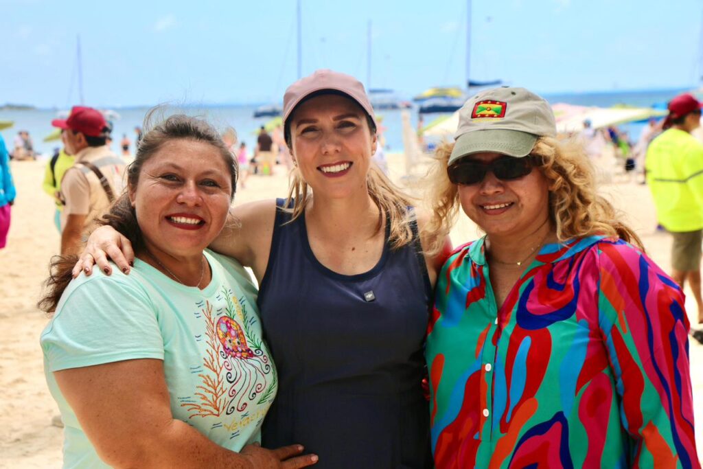 Durante su visita, la alcaldesa saludó a familias isleñas y turistas que disfrutan de este destino, a quienes exhortó a mantener limpias las playas y los espacios públicos, con el objetivo de preservar la belleza natural que distingue a Isla Mujeres.
