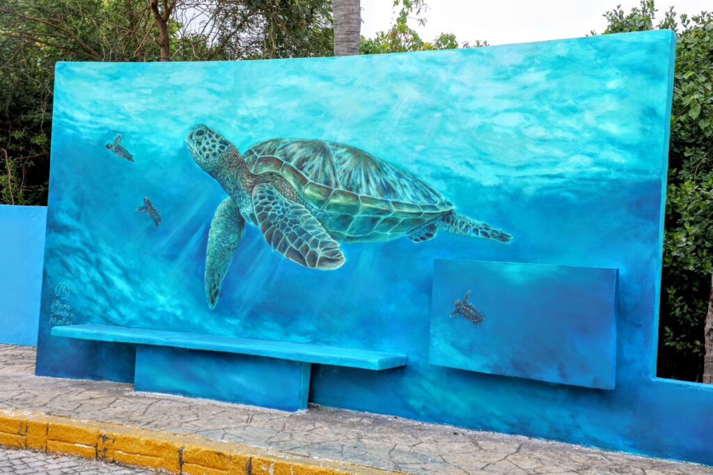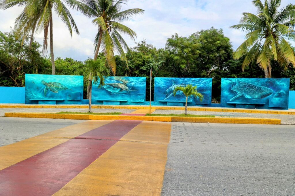 La Presidenta de Isla Mujeres, destacó que el Ayuntamiento se sumó con los murales del Tiburón Ballena y la Tortuga Marina, obras del artista Emmanuel Sánchez, que además de mejorar la imagen urbana de esta avenida principal, promueven un mensaje de sustentabilidad y cuidado de estas especies emblemáticas.